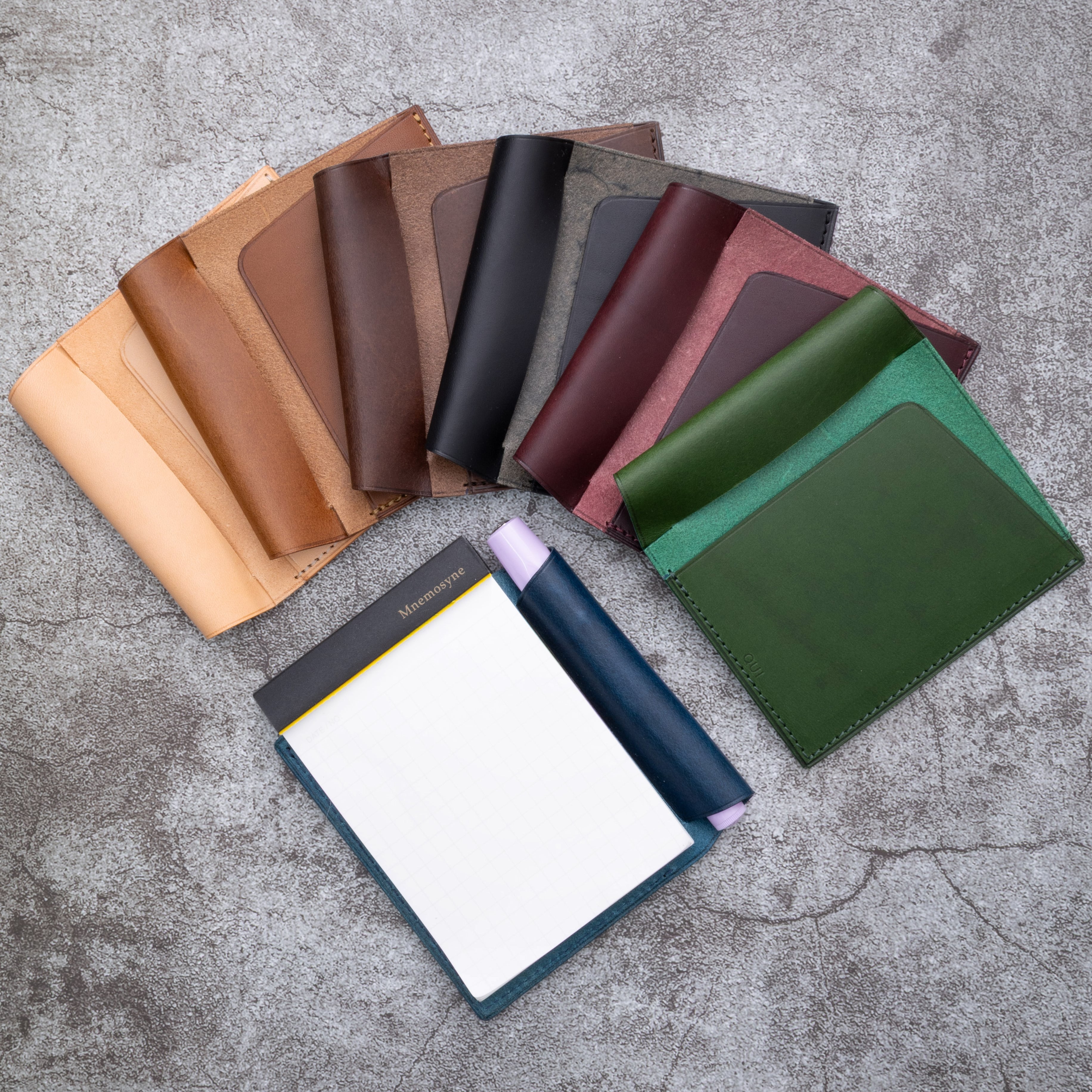 ロディアNo.11などのメモパッドをサッと取り出しメモを取り、切り離したメモを背面のポケットに差し込めるA7メモパッド用ジョッターをQUIさんに開発していただきました。