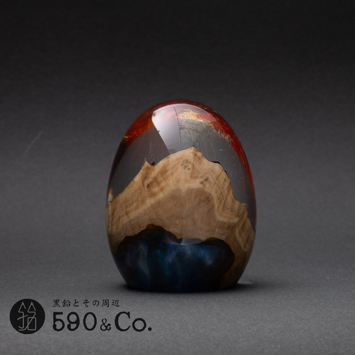 木と樹脂を組み合わせ1つ1つ手作りで仕上げた卵形オブジェ(ペーパーウェイト)のドラゴンエッグ。