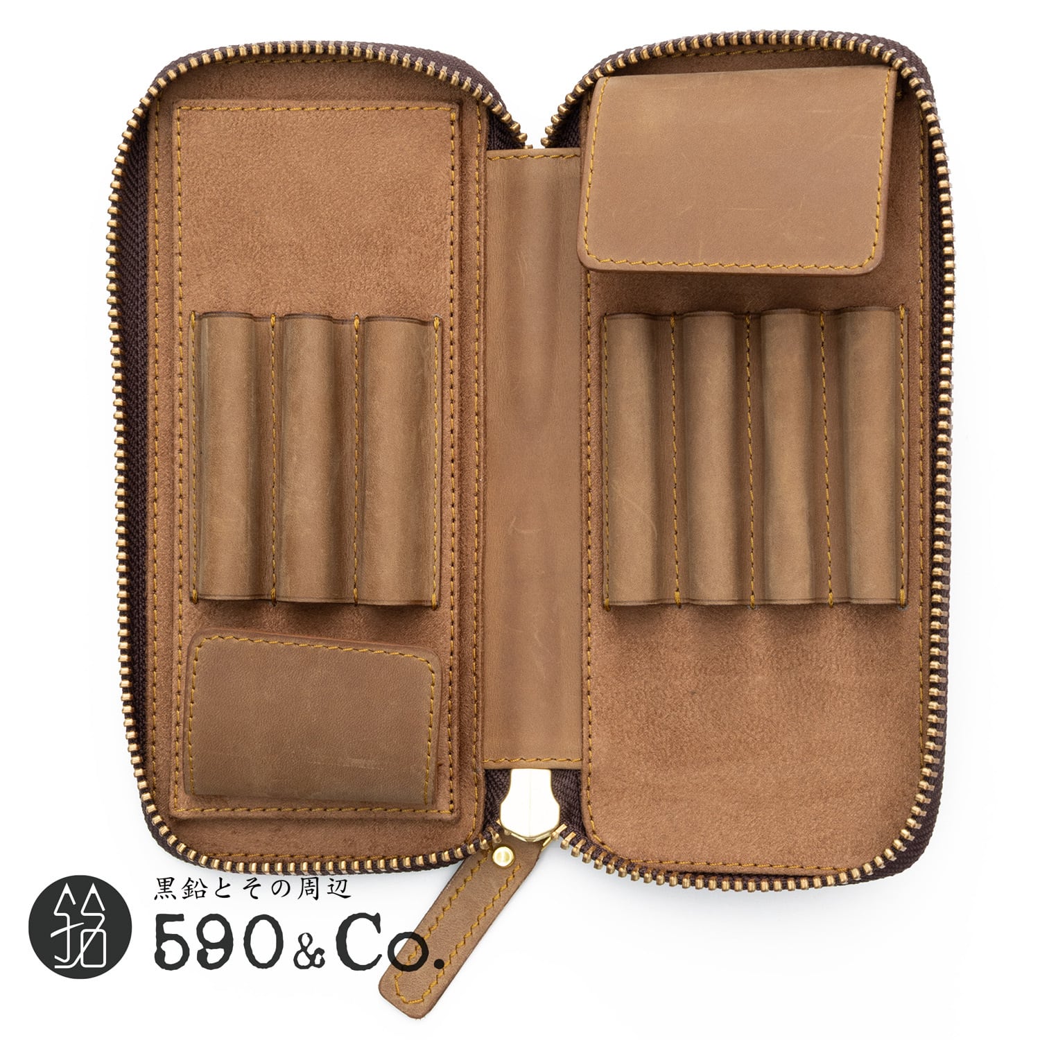 【Bahagia & craft/バハギア】廣瀬鐵筆堂モデルラウンドファスナーペンケース (クレイジーホース/ブラウン)