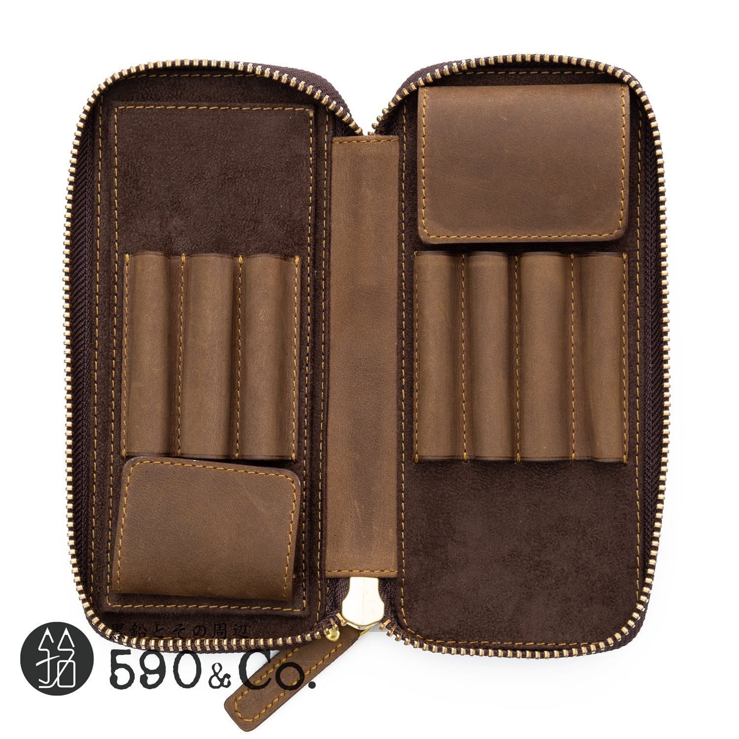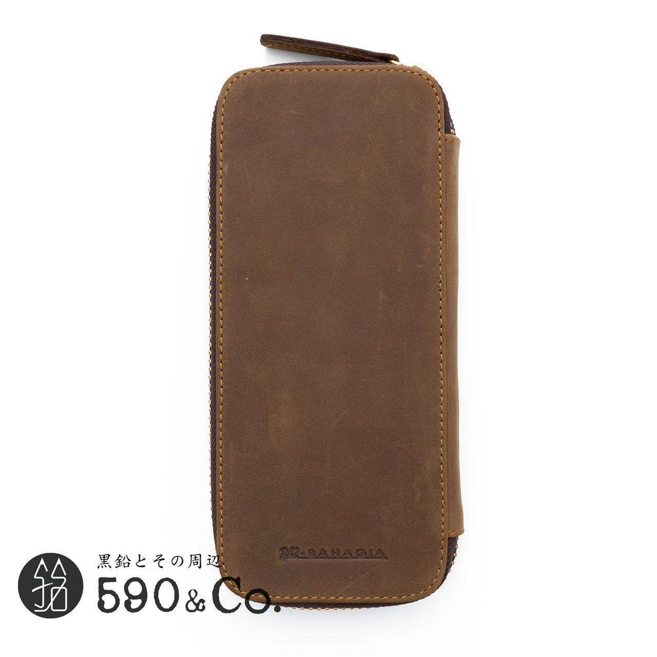 【Bahagia & craft/バハギア】廣瀬鐵筆堂モデルラウンドファスナーペンケース (クレイジーホース/オリーブブラウン)