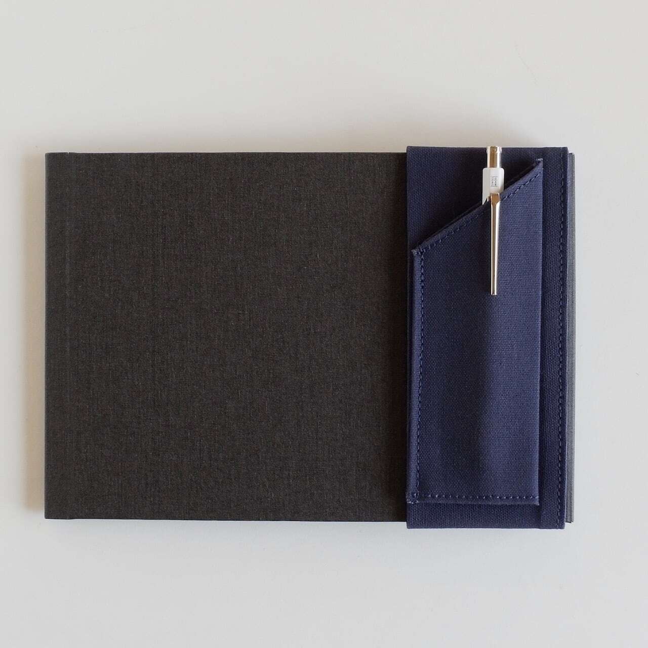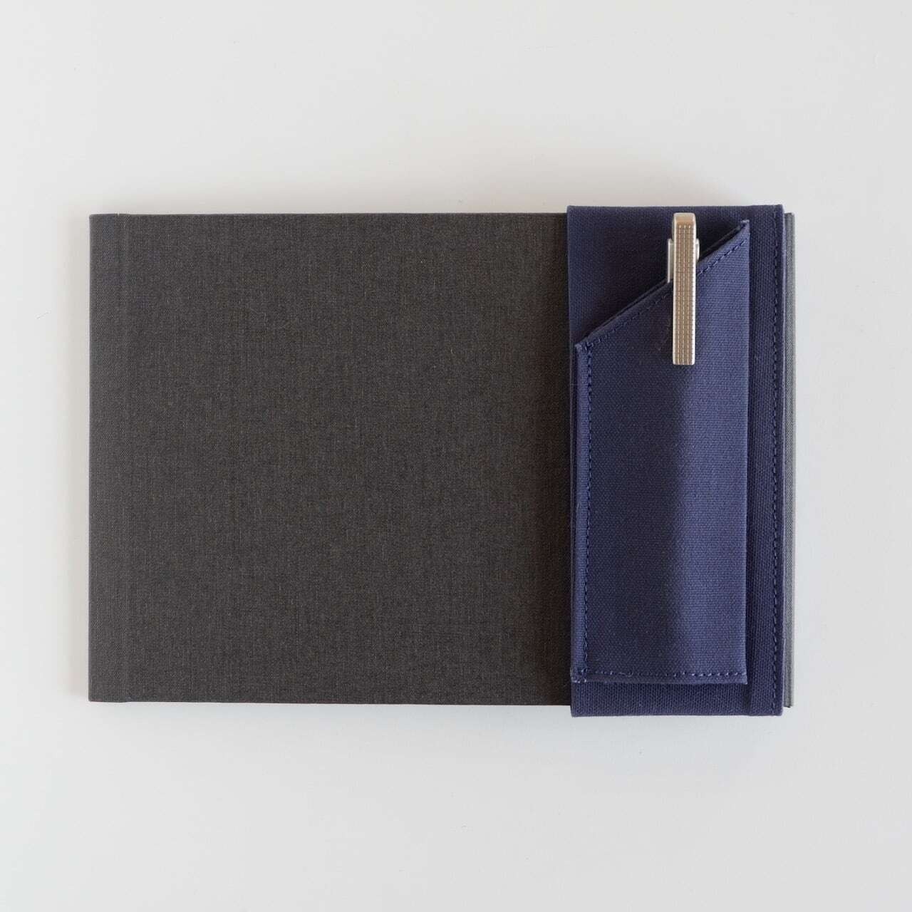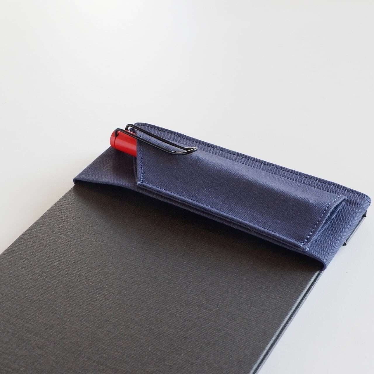 A5サイズに対応したことで、装着したペンのペン先が外にはみ出しにくくなっており、持ち運び時の安心感も向上しています。帆布素材ならではのコシにより、クリップの着脱も引っかかりにくく、日常的にストレスなく使えます。