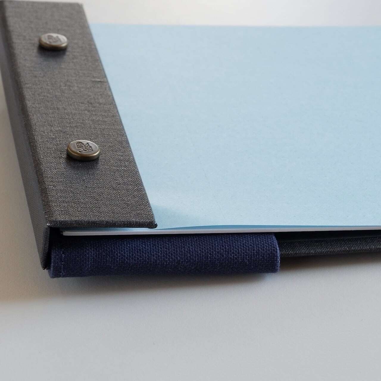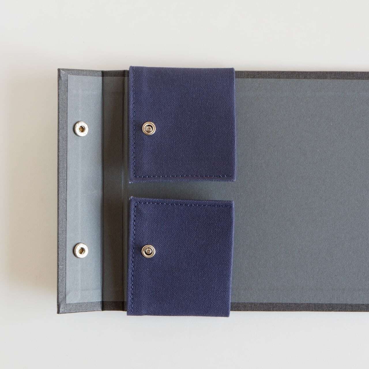 装着時は本体にぴたりと沿い、高い一体感があります。一方で帆布の厚みにより紙面の一部にわずかな段差が生じますが、スナップパッドのフラップを紙の下に挟み込むことでフラットに調整することも可能です。
