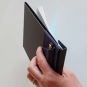 POSTALCOのスナップパッドA5に装着できる、速筆ペンホルダーです。スナップパッド背面に取り付けることで、道具としての一体感を損なうことなく、自然な流れで「取り出してすぐ書く」という動作を実現します。紙とペンを一体で扱える設計により、メモやスケッチの立ち上がりがよりスムーズになります。