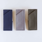 素材には厚みのある帆布を採用しており、既存の速筆ペンホルダーと同様のしっかりとした質感です。スナップ部分にはめ込んで装着し、その上から紙束をセットする構造のため、収容できる紙の枚数はやや少なくなりますが、その分しっかりと固定され、安定した使用感が得られます。