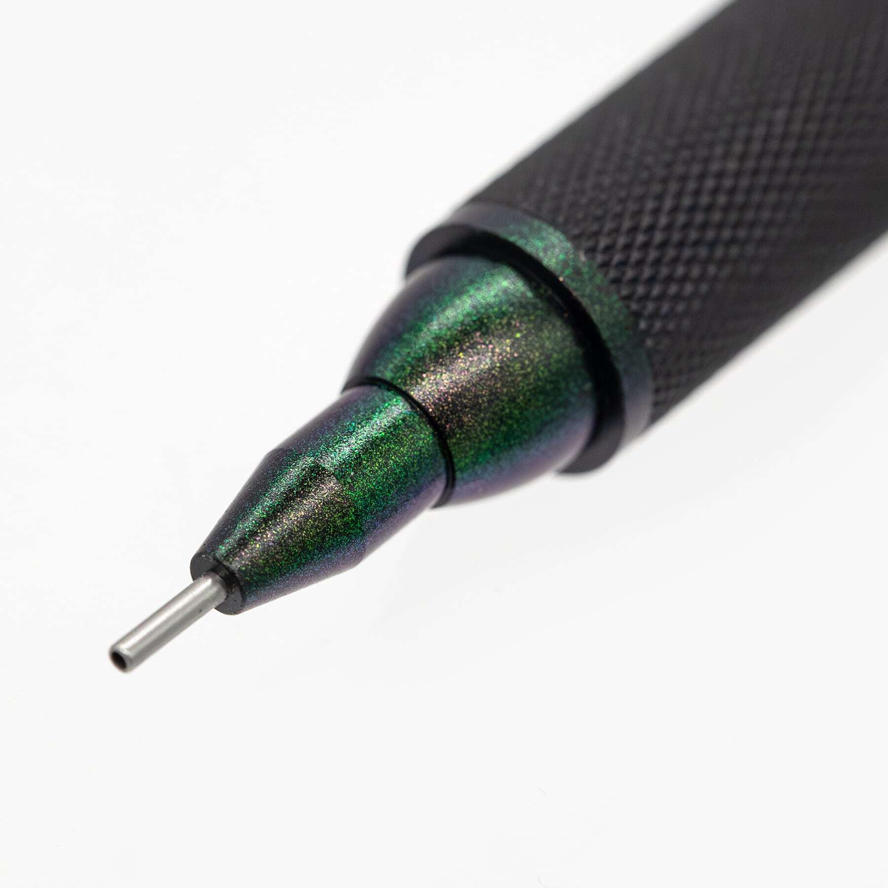 見る角度や光の条件によってグリーンからゴールドに偏光する美しく、鮮やかなシャープペンシル
