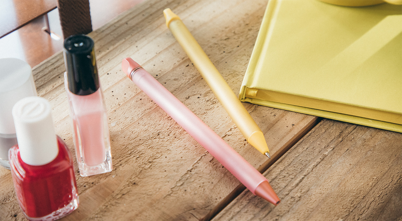 「かく」ときに握る部分はクーピーのような心地よいざらつきと柔らかさを再現。ペンの微妙なバランスと重さにこだわり、女性にも持ちやすいサイズに仕上げています。