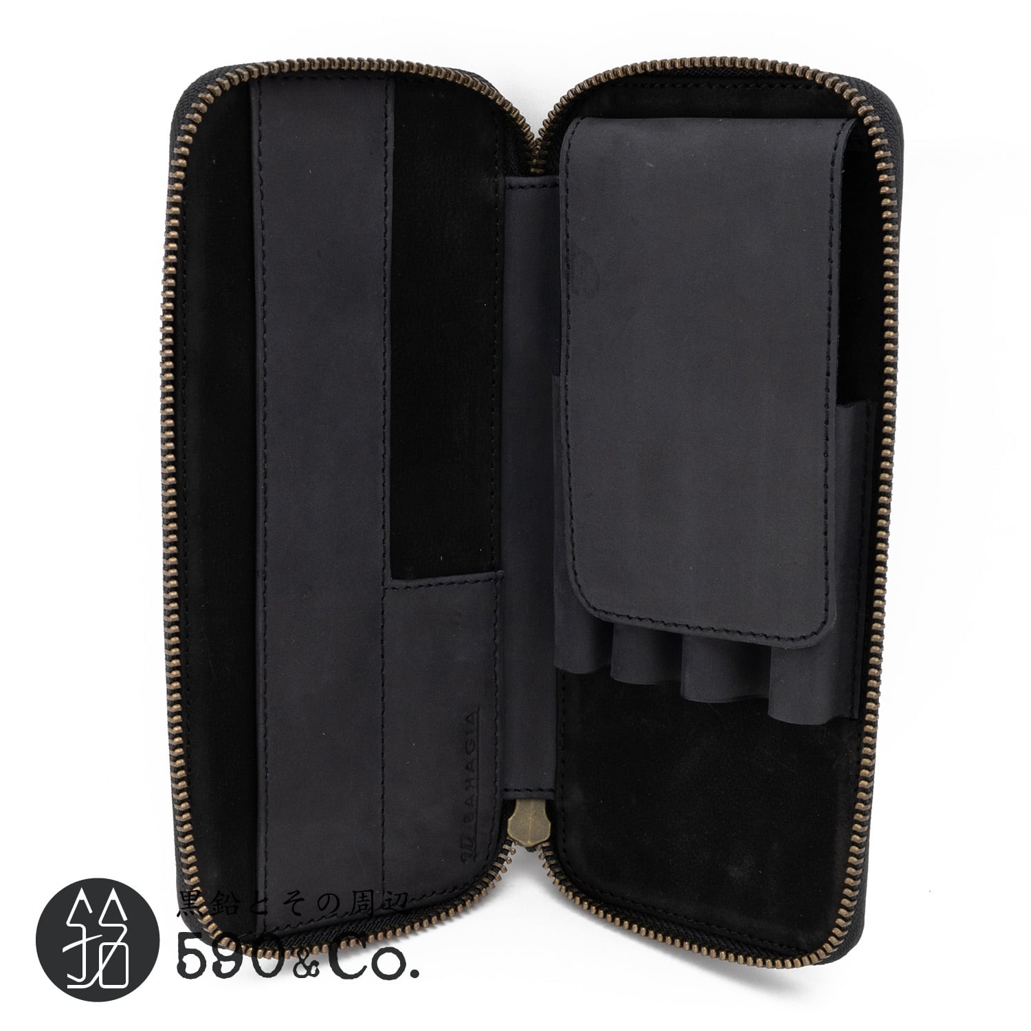 【Bahagia & craft/バハギア】ラウンドファスナーペンケース (オリジナルクレイジーホースレザー/ブラック)